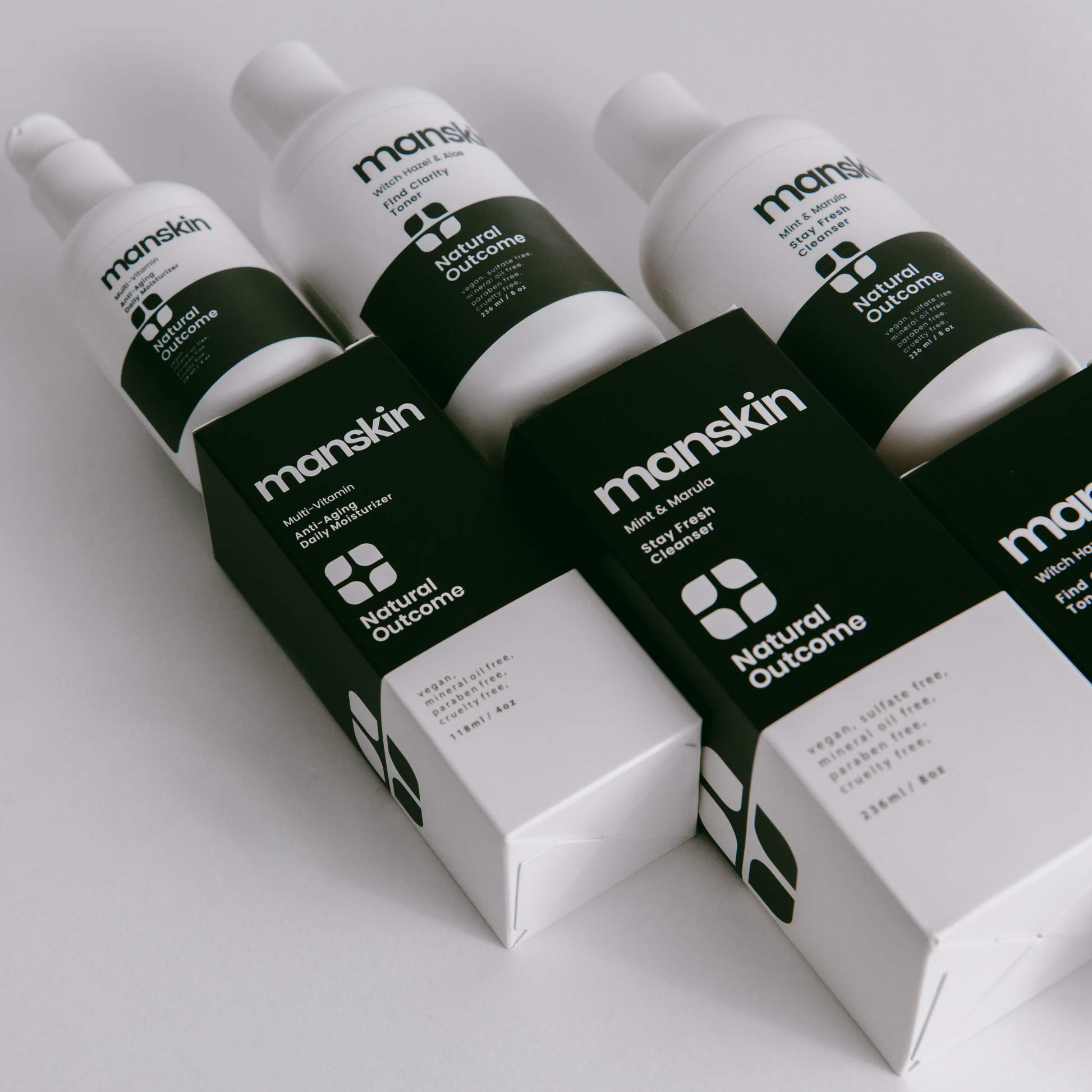 The Man Skin Collection is a complete 3 step skincare regimen for men. The Stay Fresh Face Wash removes dirt and oil while the Find Clarifty Face Toner soothes skin, leaving you feeling refreshed. Finish with our Multi Vitamin Anti Aging Moisturizer that replenishes lost moisture, improves elasticity and firms skin to reduce the appearance of fine lines and wrinkles.